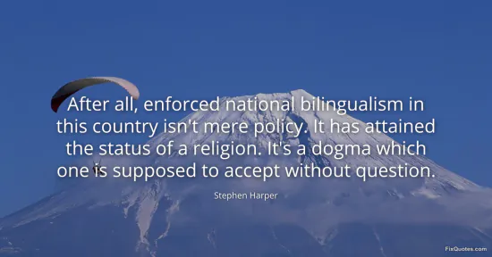 Harper, Stephen. (2026, January 15). After all, enforced national bilingualism in this country isn't mere policy. It has attained the status of a religion. It's a dogma which one is supposed to accept without question. FixQuotes. https://fixquotes.com/quotes/after-all-enforced-national-bilingualism-in-this-157369/