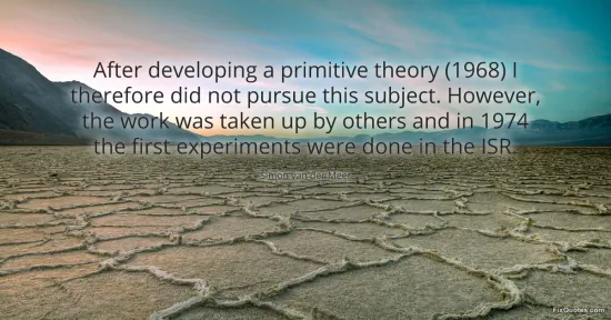 Meer, Simon van der. (2026, January 16). After developing a primitive theory (1968) I therefore did not pursue this subject. However, the work was taken up by others and in 1974 the first experiments were done in the ISR. FixQuotes. https://fixquotes.com/quotes/after-developing-a-primitive-theory-1968-i-134707/