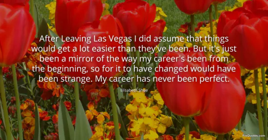 Shue, Elisabeth. "After Leaving Las Vegas I did assume that things would get a lot easier than they've been. But it's just been a mirror of the way my career's been from the beginning, so for it to have changed would have been strange. My career has never been perfect." FixQuotes. January 15, 2026. https://fixquotes.com/quotes/after-leaving-las-vegas-i-did-assume-that-things-143299/.