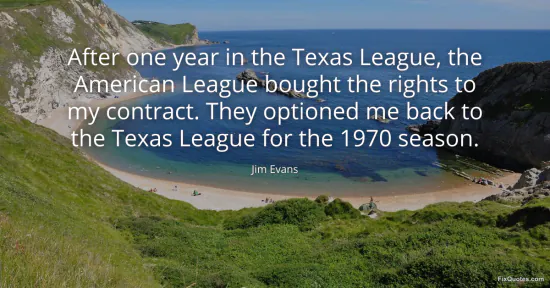 Evans, Jim. "After one year in the Texas League, the American League bought the rights to my contract. They optioned me back to the Texas League for the 1970 season." FixQuotes. January 17, 2026. https://fixquotes.com/quotes/after-one-year-in-the-texas-league-the-american-76157/.