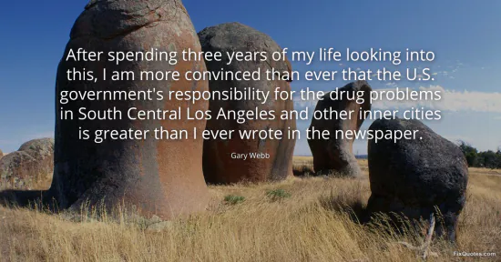 Webb, Gary. "After spending three years of my life looking into this, I am more convinced than ever that the U.S. government's responsibility for the drug problems in South Central Los Angeles and other inner cities is greater than I ever wrote in the newspaper." FixQuotes. January 16, 2026. https://fixquotes.com/quotes/after-spending-three-years-of-my-life-looking-112157/.