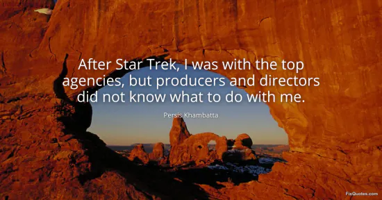 Khambatta, Persis. "After Star Trek, I was with the top agencies, but producers and directors did not know what to do with me." FixQuotes. January 16, 2026. https://fixquotes.com/quotes/after-star-trek-i-was-with-the-top-agencies-but-90402/.