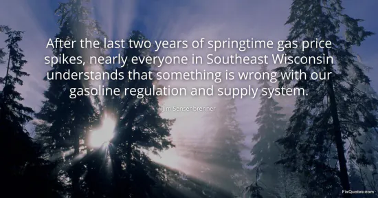 Sensenbrenner, Jim. (2026, January 17). After the last two years of springtime gas price spikes, nearly everyone in Southeast Wisconsin understands that something is wrong with our gasoline regulation and supply system. FixQuotes. https://fixquotes.com/quotes/after-the-last-two-years-of-springtime-gas-price-56238/