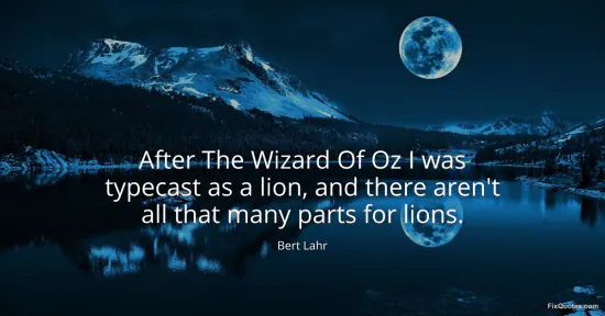 Lahr, Bert. "After The Wizard Of Oz I was typecast as a lion, and there aren't all that many parts for lions." FixQuotes. January 15, 2026. https://fixquotes.com/quotes/after-the-wizard-of-oz-i-was-typecast-as-a-lion-168785/.