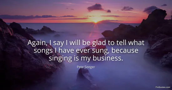 Seeger, Pete. (2026, January 16). Again, I say I will be glad to tell what songs I have ever sung, because singing is my business. FixQuotes. https://fixquotes.com/quotes/again-i-say-i-will-be-glad-to-tell-what-songs-i-115527/