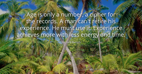 Baruch, Bernard. "Age is only a number, a cipher for the records. A man can't retire his experience. He must use it. Experience achieves more with less energy and time." FixQuotes. January 17, 2026. https://fixquotes.com/quotes/age-is-only-a-number-a-cipher-for-the-records-a-44784/.