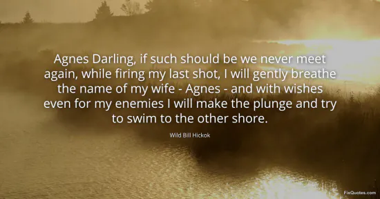 Hickok, Wild Bill. (2026, January 16). Agnes Darling, if such should be we never meet again, while firing my last shot, I will gently breathe the name of my wife - Agnes - and with wishes even for my enemies I will make the plunge and try to swim to the other shore. FixQuotes. https://fixquotes.com/quotes/agnes-darling-if-such-should-be-we-never-meet-131222/