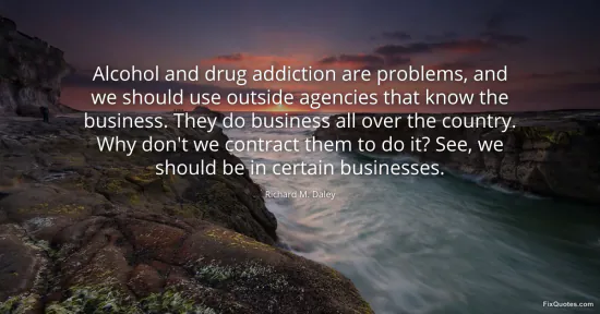 Daley, Richard M. (2026, January 15). Alcohol and drug addiction are problems, and we should use outside agencies that know the business. They do business all over the country. Why don't we contract them to do it? See, we should be in certain businesses. FixQuotes. https://fixquotes.com/quotes/alcohol-and-drug-addiction-are-problems-and-we-153189/