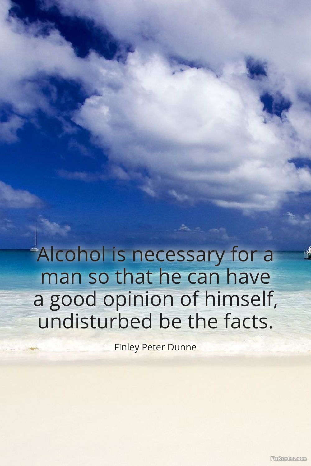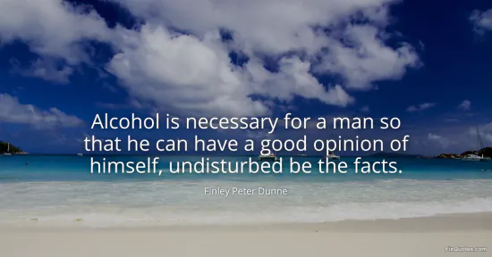 Dunne, Finley Peter. "Alcohol is necessary for a man so that he can have a good opinion of himself, undisturbed be the facts." FixQuotes. January 15, 2026. https://fixquotes.com/quotes/alcohol-is-necessary-for-a-man-so-that-he-can-149307/.