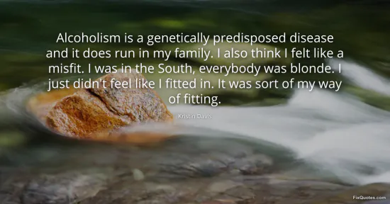 Davis, Kristin. "Alcoholism is a genetically predisposed disease and it does run in my family. I also think I felt like a misfit. I was in the South, everybody was blonde. I just didn't feel like I fitted in. It was sort of my way of fitting." FixQuotes. January 15, 2026. https://fixquotes.com/quotes/alcoholism-is-a-genetically-predisposed-disease-164108/.