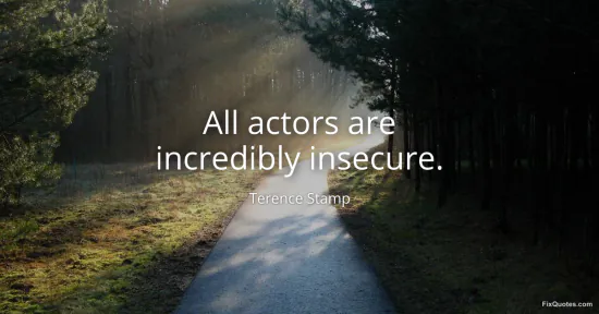 “All actors are incredibly insecure” lands like a confession disguised as a blanket indictment. Coming from Terence Stamp, it doesn’t read as gossip or cruelty; it reads as industry-literate candor from someone who’s spent decades watching the machinery up close. The word “all” is doing the dirty work here: it’s hyperbole, yes, but it’s also a defensive move, flattening individual pathology into a shared occupational condition. If everyone’s insecure, no one has to be ashamed of it.