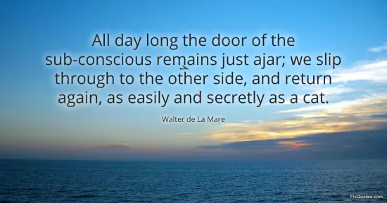 Mare, Walter de La. "All day long the door of the sub-conscious remains just ajar; we slip through to the other side, and return again, as easily and secretly as a cat." FixQuotes. January 15, 2026. https://fixquotes.com/quotes/all-day-long-the-door-of-the-sub-conscious-86760/.
