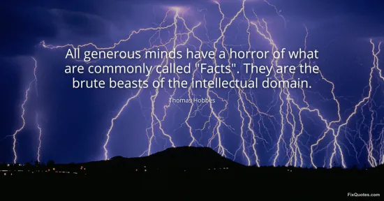 Hobbes, Thomas. "All generous minds have a horror of what are commonly called "Facts". They are the brute beasts of the intellectual domain." FixQuotes. January 18, 2026. https://fixquotes.com/quotes/all-generous-minds-have-a-horror-of-what-are-2055/.