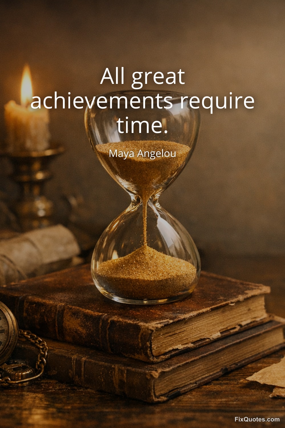 Angelou, Maya. (2026, February 7). All great achievements require time. FixQuotes. https://fixquotes.com/quotes/all-great-achievements-require-time-24900/