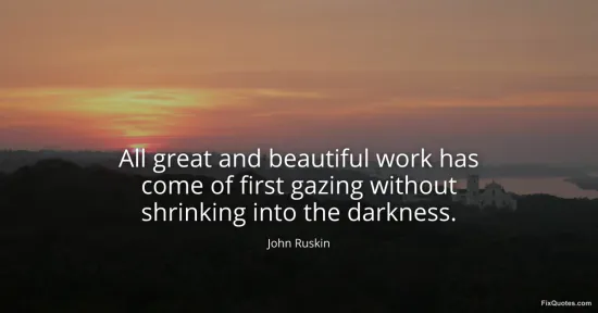 Ruskin, John. (2026, February 15). All great and beautiful work has come of first gazing without shrinking into the darkness. FixQuotes. https://fixquotes.com/quotes/all-great-and-beautiful-work-has-come-of-first-32158/