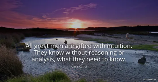 Carrel, Alexis. (2026, January 15). All great men are gifted with intuition. They know without reasoning or analysis, what they need to know. FixQuotes. https://fixquotes.com/quotes/all-great-men-are-gifted-with-intuition-they-know-29729/
