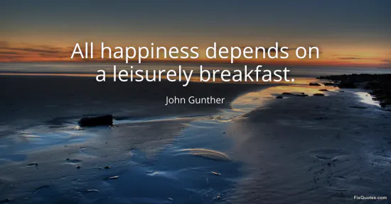 | Source | Quote attribution: "All happiness depends on a leisurely breakfast." — John Gunther; cited on Wikiquote (John Gunther). |