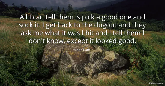 Ruth, Babe. "All I can tell them is pick a good one and sock it. I get back to the dugout and they ask me what it was I hit and I tell them I don't know, except it looked good." FixQuotes. February 19, 2026. https://fixquotes.com/quotes/all-i-can-tell-them-is-pick-a-good-one-and-sock-30012/.