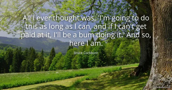 Cockburn, Bruce. "All I ever thought was, 'I'm going to do this as long as I can, and if I can't get paid at it, I'll be a bum doing it.' And so, here I am." FixQuotes. January 16, 2026. https://fixquotes.com/quotes/all-i-ever-thought-was-im-going-to-do-this-as-109557/.