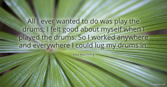 Weinberg, Max. (2026, January 16). All I ever wanted to do was play the drums; I felt good about myself when I played the drums. So I worked anywhere and everywhere I could lug my drums in. FixQuotes. https://fixquotes.com/quotes/all-i-ever-wanted-to-do-was-play-the-drums-i-felt-127560/