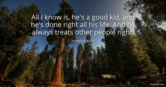 Jackson, Joseph. (2026, January 17). All I know is, he's a good kid, and he's done right all his life. And he always treats other people right. FixQuotes. https://fixquotes.com/quotes/all-i-know-is-hes-a-good-kid-and-hes-done-right-62107/