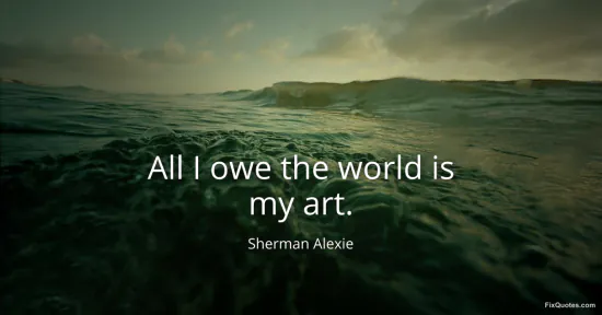 Alexie, Sherman. (2026, January 16). All I owe the world is my art. FixQuotes. https://fixquotes.com/quotes/all-i-owe-the-world-is-my-art-129313/