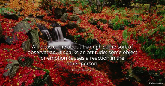 Chapman, Graham. (2026, January 16). All ideas come about through some sort of observation. It sparks an attitude; some object or emotion causes a reaction in the other person. FixQuotes. https://fixquotes.com/quotes/all-ideas-come-about-through-some-sort-of-120729/