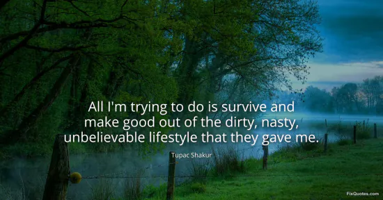 Shakur, Tupac. "All I'm trying to do is survive and make good out of the dirty, nasty, unbelievable lifestyle that they gave me." FixQuotes. January 18, 2026. https://fixquotes.com/quotes/all-im-trying-to-do-is-survive-and-make-good-out-2152/.