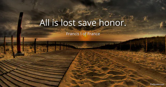 France, Francis I of. "All is lost save honor." FixQuotes. February 10, 2026. https://fixquotes.com/quotes/all-is-lost-save-honor-51093/.