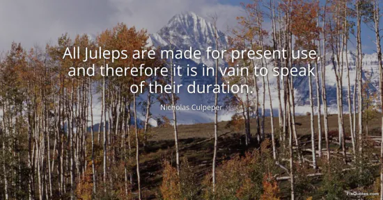 Culpeper, Nicholas. (2026, January 16). All Juleps are made for present use, and therefore it is in vain to speak of their duration. FixQuotes. https://fixquotes.com/quotes/all-juleps-are-made-for-present-use-and-therefore-82853/
