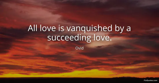 Ovid. "All love is vanquished by a succeeding love." FixQuotes. January 18, 2026. https://fixquotes.com/quotes/all-love-is-vanquished-by-a-succeeding-love-8610/.