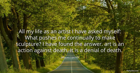 Lipchitz, Jacques. (2026, January 16). All my life as an artist I have asked myself: What pushes me continually to make sculpture? I have found the answer. art is an action against death. It is a denial of death. FixQuotes. https://fixquotes.com/quotes/all-my-life-as-an-artist-i-have-asked-myself-what-89089/