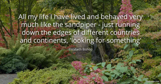 Bishop, Elizabeth. "All my life I have lived and behaved very much like the sandpiper - just running down the edges of different countries and continents, 'looking for something'." FixQuotes. January 15, 2026. https://fixquotes.com/quotes/all-my-life-i-have-lived-and-behaved-very-much-170858/.