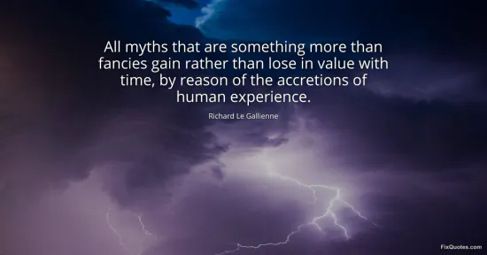 Gallienne, Richard Le. "All myths that are something more than fancies gain rather than lose in value with time, by reason of the accretions of human experience." FixQuotes. January 16, 2026. https://fixquotes.com/quotes/all-myths-that-are-something-more-than-fancies-89874/.