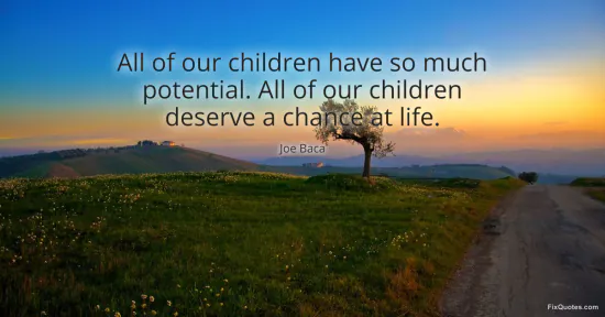 Baca, Joe. (2026, January 16). All of our children have so much potential. All of our children deserve a chance at life. FixQuotes. https://fixquotes.com/quotes/all-of-our-children-have-so-much-potential-all-of-87369/