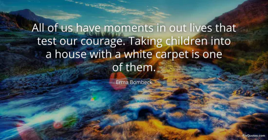 Bombeck, Erma. (2026, January 17). All of us have moments in out lives that test our courage. Taking children into a house with a white carpet is one of them. FixQuotes. https://fixquotes.com/quotes/all-of-us-have-moments-in-out-lives-that-test-our-31105/