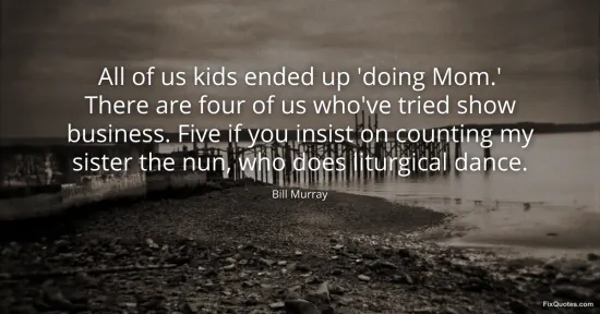 Murray, Bill. "All of us kids ended up 'doing Mom.' There are four of us who've tried show business. Five if you insist on counting my sister the nun, who does liturgical dance." FixQuotes. January 17, 2026. https://fixquotes.com/quotes/all-of-us-kids-ended-up-doing-mom-there-are-four-72225/.