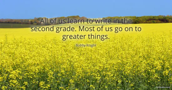Knight, Bobby. "All of us learn to write in the second grade. Most of us go on to greater things." FixQuotes. January 15, 2026. https://fixquotes.com/quotes/all-of-us-learn-to-write-in-the-second-grade-most-27479/.