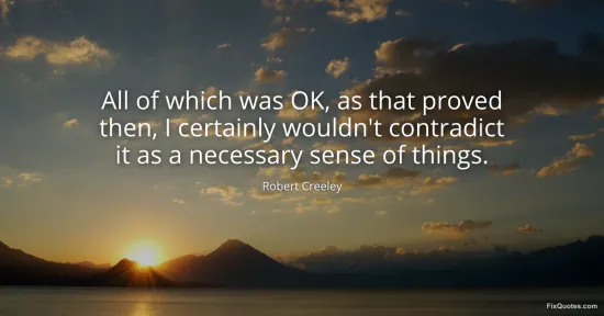 Creeley, Robert. "All of which was OK, as that proved then, I certainly wouldn't contradict it as a necessary sense of things." FixQuotes. January 15, 2026. https://fixquotes.com/quotes/all-of-which-was-ok-as-that-proved-then-i-164471/.