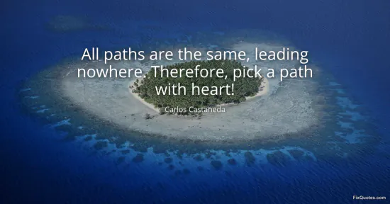 Castaneda, Carlos. "All paths are the same, leading nowhere. Therefore, pick a path with heart!" FixQuotes. February 8, 2026. https://fixquotes.com/quotes/all-paths-are-the-same-leading-nowhere-therefore-157889/.