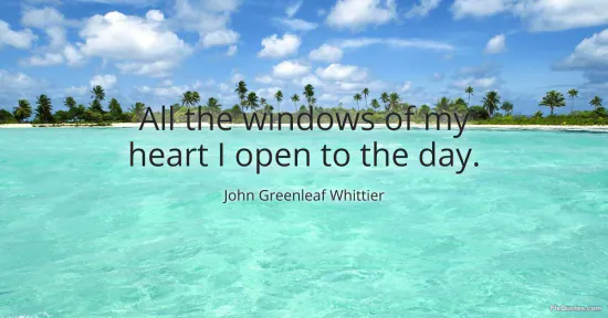 Whittier, John Greenleaf. (2026, January 16). All the windows of my heart I open to the day. FixQuotes. https://fixquotes.com/quotes/all-the-windows-of-my-heart-i-open-to-the-day-113474/