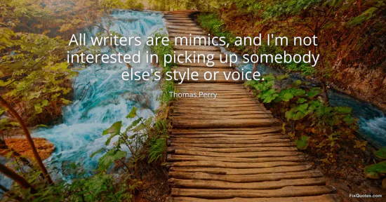 Perry, Thomas. (2026, January 16). All writers are mimics, and I'm not interested in picking up somebody else's style or voice. FixQuotes. https://fixquotes.com/quotes/all-writers-are-mimics-and-im-not-interested-in-96682/
