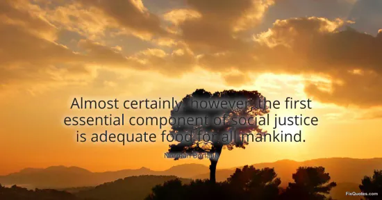 "Almost certainly, however, the first essential component of social justice is adequate food for all mankind." FixQuotes, 15 Jan. 2026, https://fixquotes.com/quotes/almost-certainly-however-the-first-essential-5363/. Accessed 12 Feb. 2026.