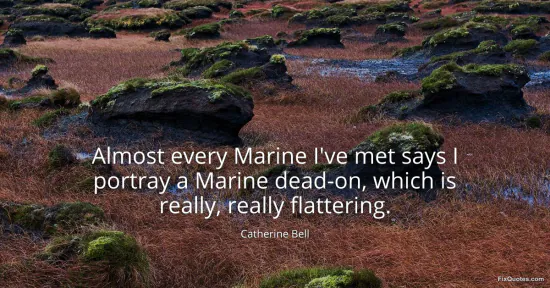 Bell, Catherine. "Almost every Marine I've met says I portray a Marine dead-on, which is really, really flattering." FixQuotes. January 16, 2026. https://fixquotes.com/quotes/almost-every-marine-ive-met-says-i-portray-a-98945/.