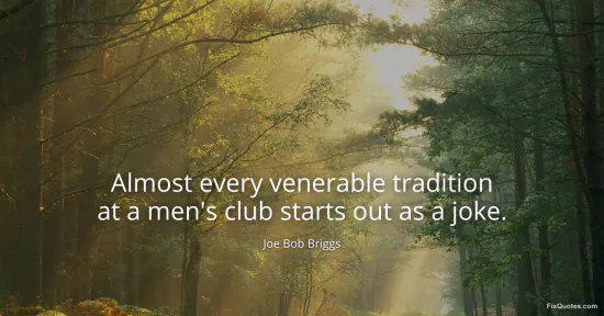 Briggs, Joe Bob. (2026, January 15). Almost every venerable tradition at a men's club starts out as a joke. FixQuotes. https://fixquotes.com/quotes/almost-every-venerable-tradition-at-a-mens-club-147123/
