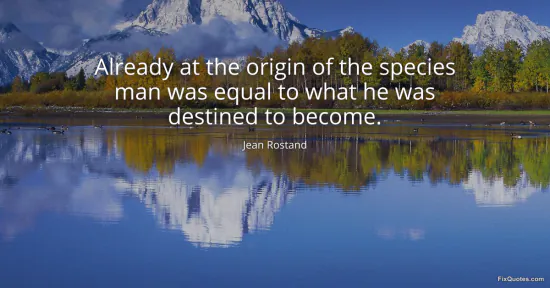 Rostand, Jean. (2026, January 18). Already at the origin of the species man was equal to what he was destined to become. FixQuotes. https://fixquotes.com/quotes/already-at-the-origin-of-the-species-man-was-17836/