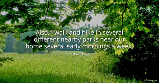 Boyd, Malcolm. (2026, January 16). Also, I walk and hike in several different nearby parks near our home several early mornings a week. FixQuotes. https://fixquotes.com/quotes/also-i-walk-and-hike-in-several-different-nearby-114953/