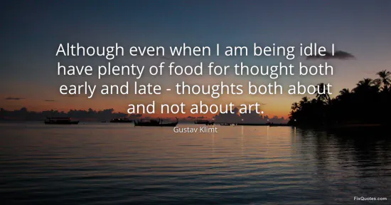 Klimt, Gustav. (2026, January 18). Although even when I am being idle I have plenty of food for thought both early and late - thoughts both about and not about art. FixQuotes. https://fixquotes.com/quotes/although-even-when-i-am-being-idle-i-have-plenty-7138/