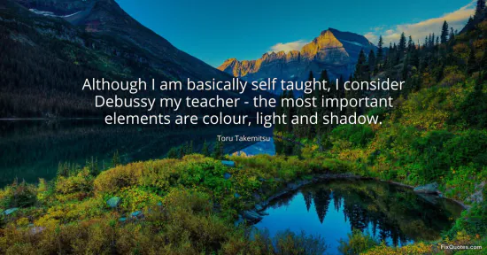 Takemitsu, Toru. "Although I am basically self taught, I consider Debussy my teacher - the most important elements are colour, light and shadow." FixQuotes. January 14, 2026. https://fixquotes.com/quotes/although-i-am-basically-self-taught-i-consider-169144/.