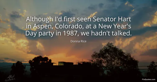 Rice, Donna. (2026, January 17). Although I'd first seen Senator Hart in Aspen, Colorado, at a New Year's Day party in 1987, we hadn't talked. FixQuotes. https://fixquotes.com/quotes/although-id-first-seen-senator-hart-in-aspen-48616/